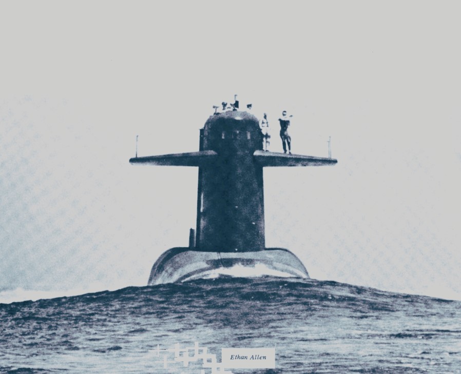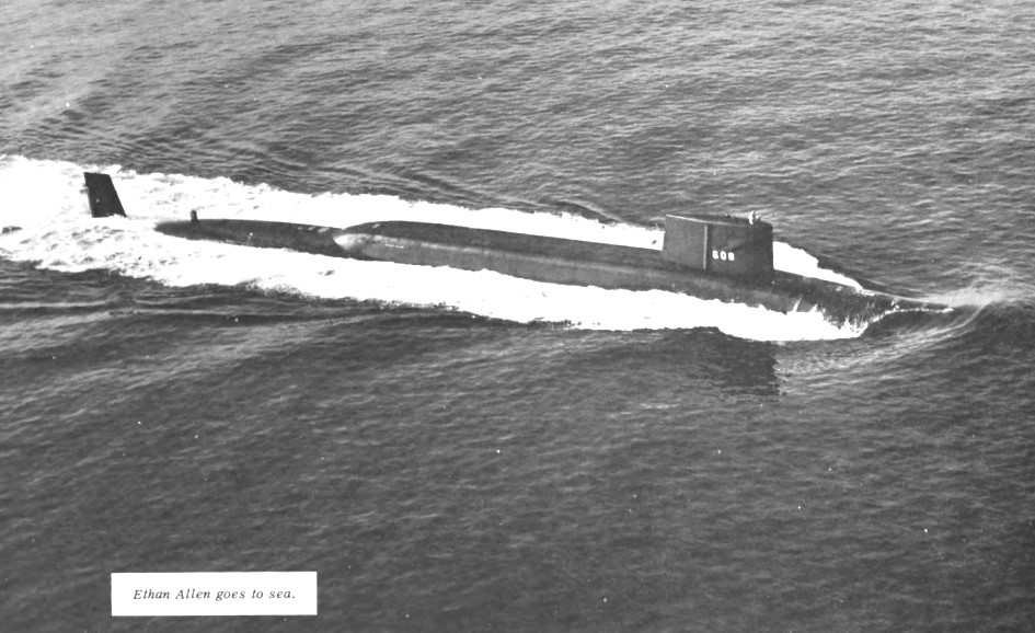 The USS Ethan Allen is one of the heaviest submarines built by any nation. With a length of 410 feet and a submerged displacement of 6,900 tons, she is comparable in size to a pocket battleship. Despite her size the ship is very quiet, maneuverable, and capable of submerged speeds in excess of twenty knots. She is capable of firing the 1500-mile Polaris missile.