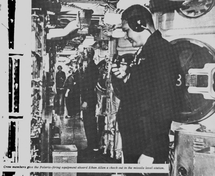 Missiles aboard the first two generations of Polaris submarines—the George Washington and Ethan Allen classes–have a range of 1,200 to 1,500 nautical miles. A new Polaris missile capable of hitting its target 2,500 miles away has been developed. These are aboard a third generation of Polaris submarines — the Lafayette and Alexander Hamilton.