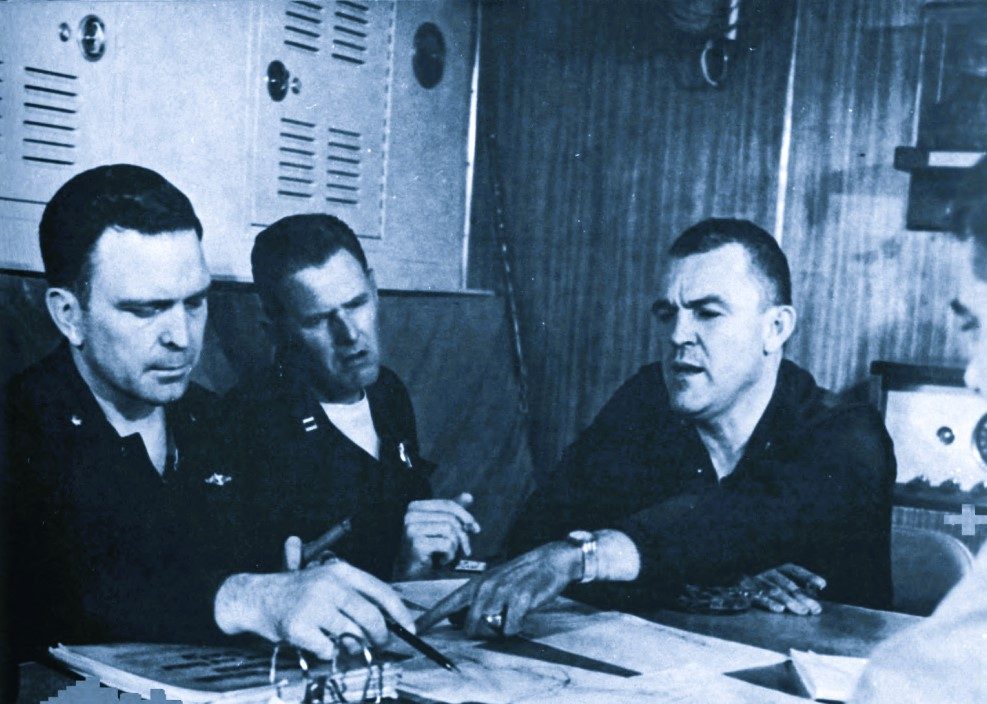The ship has three SINS, each checking on the others. Similar systems guided Nautilus and Skate on their historic voyages beneath the polar ice in 1958, Triton on her 84-day underwater cruise around the world, and more recently, Seadragon and Skate in their rendezvous at the North Pole in the summer of 1962.