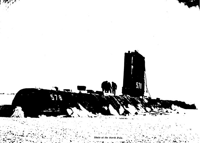 Aug. 12, 1958 USS Skate crossed “under” the North Pole. Submerged under ice pack in Greenland Sea on August 9th; surfaced through the ice 9 times; returned to Greenland Sea on August 19, 1958.
