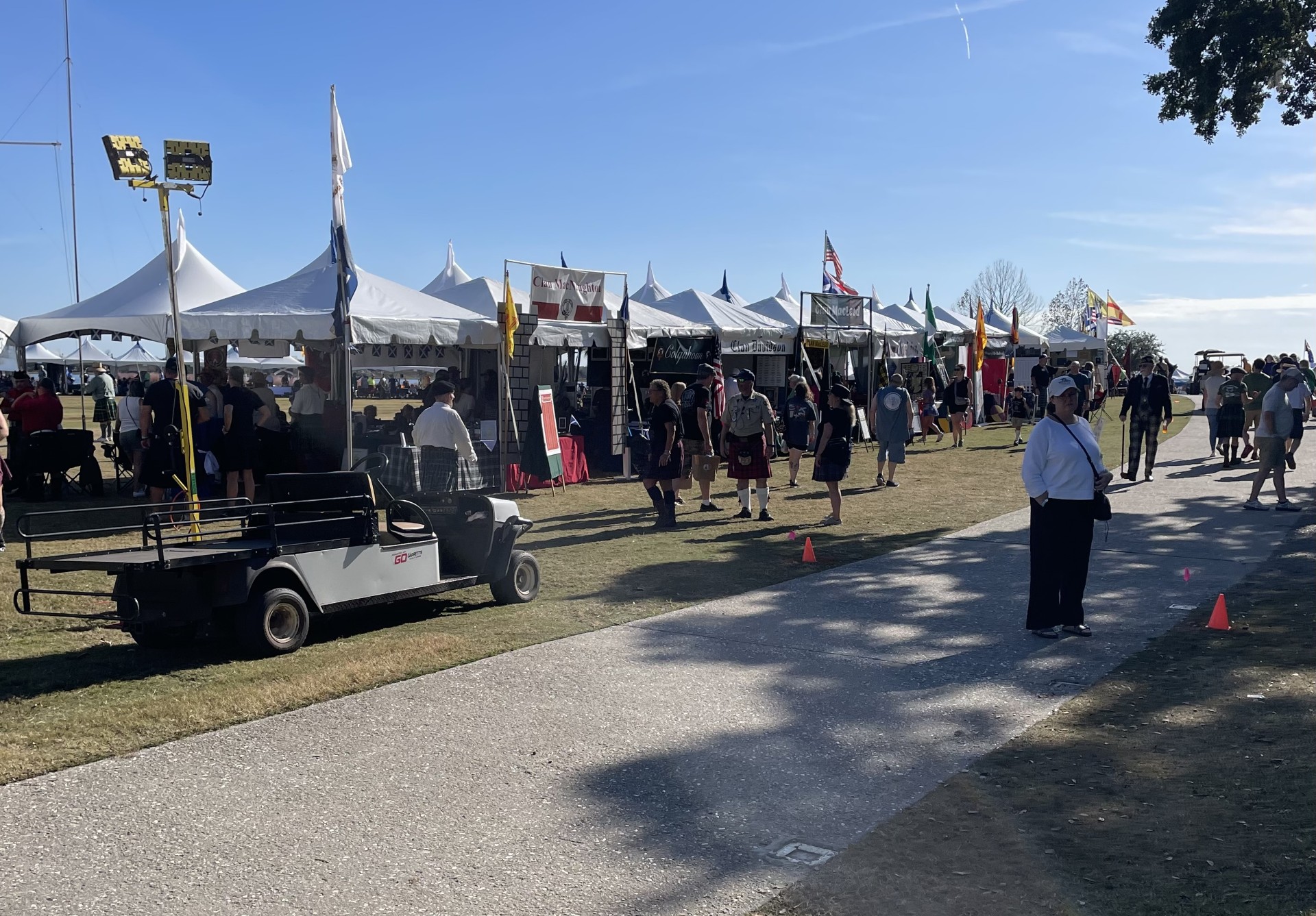 I hadn’t been to a gathering for a few years so hearing the pipes and drums was a special treat. I have to give the bands credit though. They played well despite the fact that the heat was at about 86 degrees. Somehow, I thought November would be colder. We had a few Scottish treats (meat pies and bridies) and talked with a number of people as we walked around. Sadly, I could not find my Clan before the marching and did not participate. Maybe next year.
