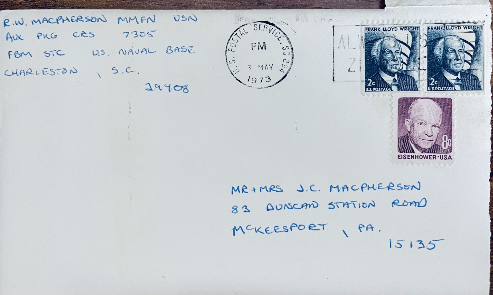 As I pulled a stack of letters out, I found some that he had saved that I sent him back in the early seventies. This particular batch was from the Fleet Ballistic Missile Submarine Training Cener at the Charleston Naval Base. I was attending an advanced training program on my way to my first boat. The boat (USS George Washington) had already left for Hawaii and I was supposed to catch up with her after I finished.