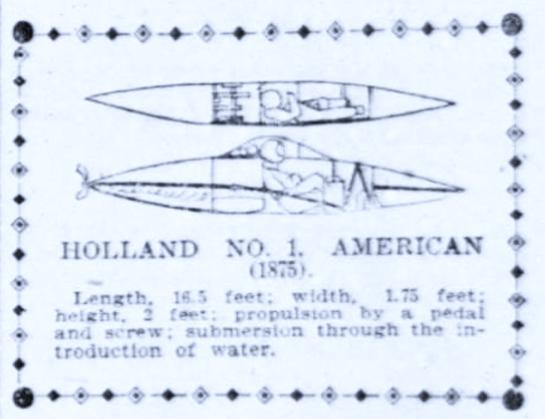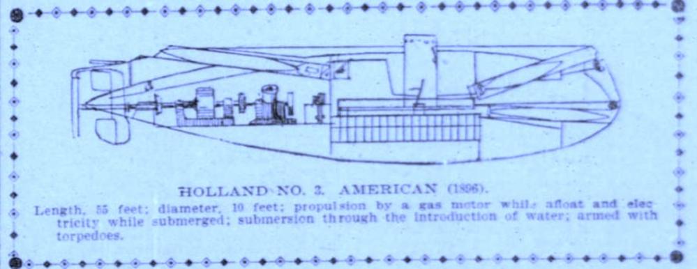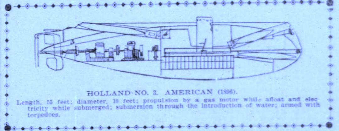 There have been three Holland boats. The first was a very small one, holding but one man. who propelled the boat by working the screw with his feet while half reclining in a very uncomfortable position. The boat was only two feet high and less than two feet wide. The second, known as the Plunger, the largest of the three, is complicated by a great deal of machinery. The third is the one of which we have heard so much in the last three years.