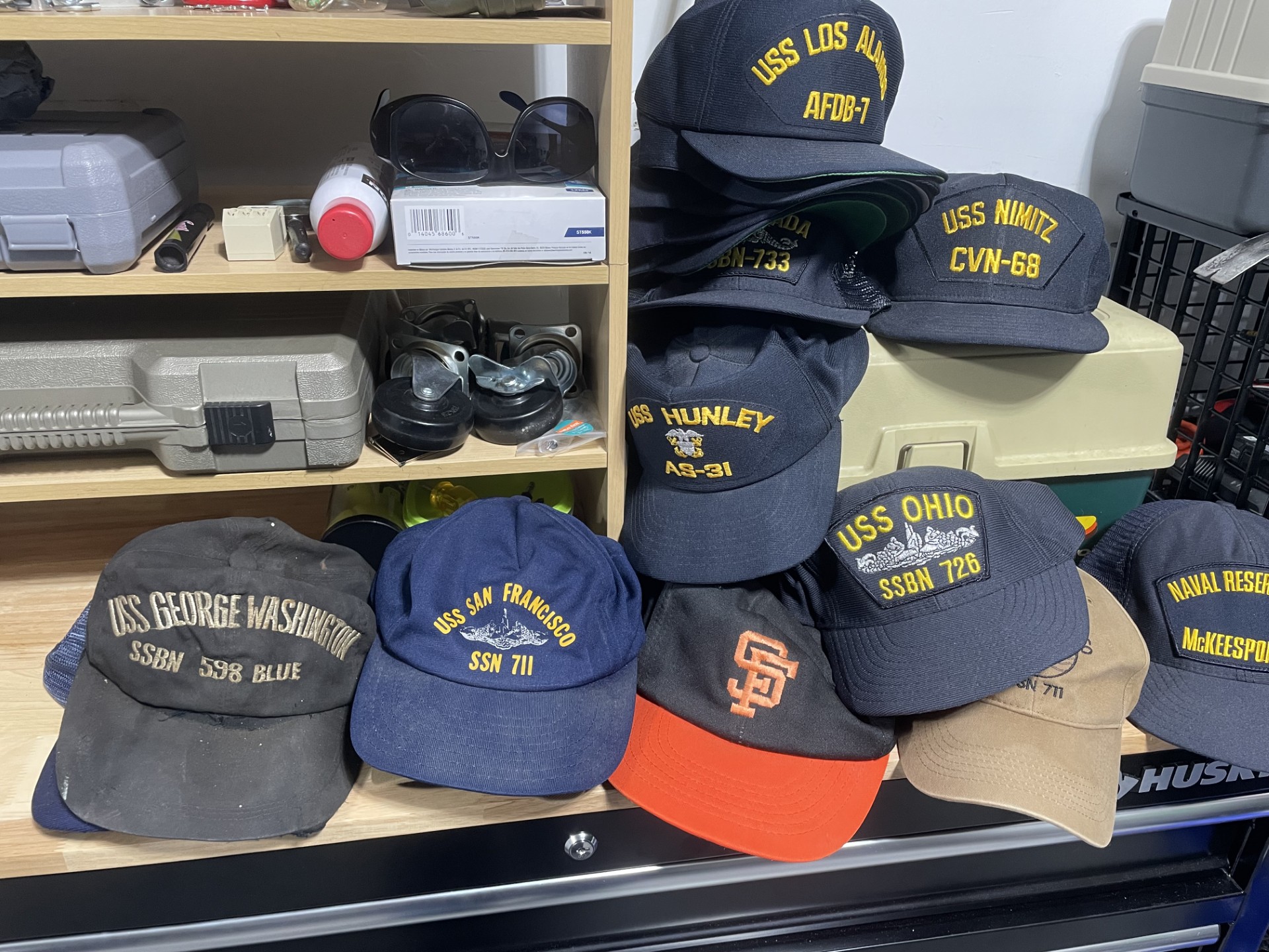 Yep, I have boxes filled with hats. Nearly all five of my submarines, both of my tours as a Chief Warrant Officer, and on and on. After I retired, I thought I could break free of my addiction. But sadly, I was quickly swallowed up with enablers. American Legion, VFW, Sub Vets and more. Then the Navy saw me struggling and started selling hats in the exchange that said Navy Veteran and Submarine Veteran. I was lost.