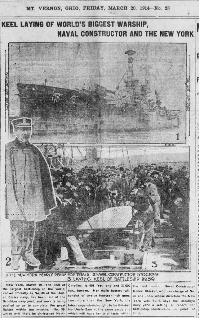 KEEL LAYING OF WORLD’S BIGGEST WARSHIP, NAVAL CONSTRUCTOR AND THE NEW YORK (BB-34).