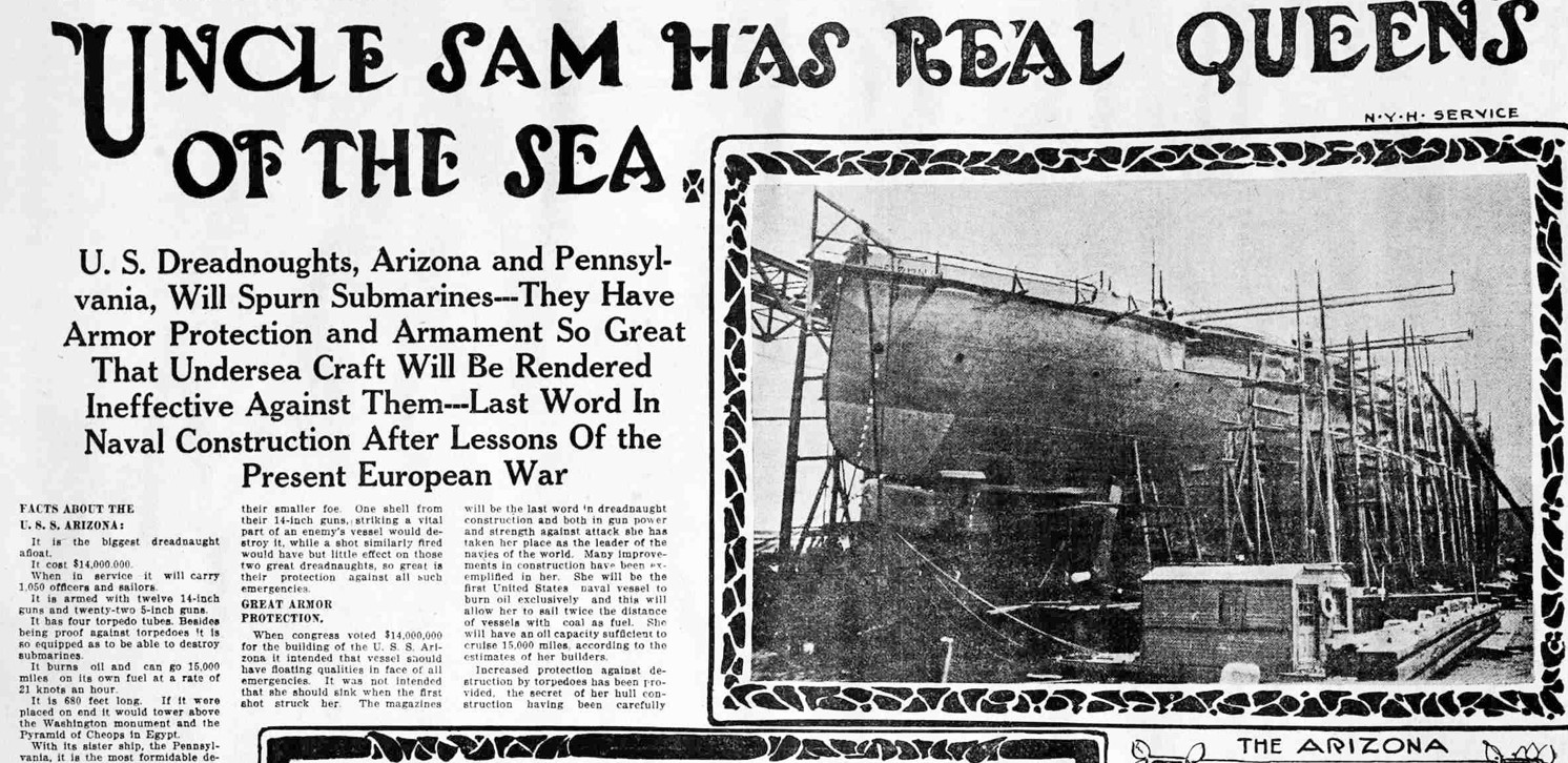 S. Dreadnoughts, Arizona (BB-39) and Pennsylvania (BB-38) Will Spurn Submarines
