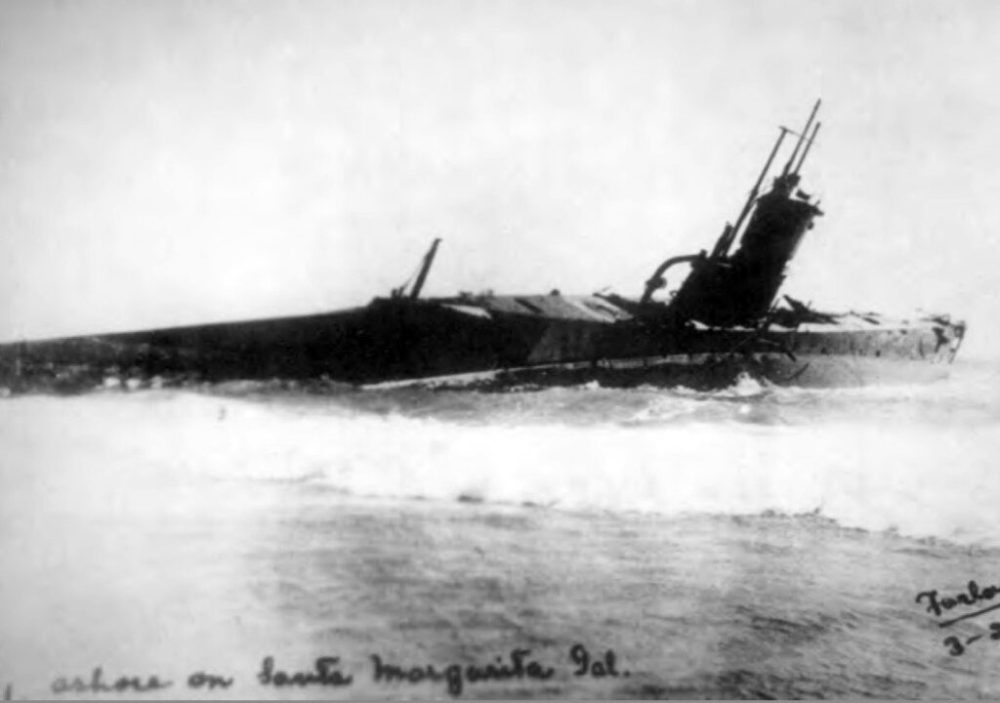 After crossing the Panama Canal, the H-1 went ran aground on a shoal off the coast of Santa Margarita Island in Mexico’s Baja California on March 12th, 1920. Efforts were made all night to try and free the boat from the rocks. Unfortunately, the shoal held tight and the actions that were taken to free her probably damaged the hull which more than likely produced flooding into the boat. The later investigations indicated that seawater entered in such a manner as to reach the battery. As any submarine knows, water and batteries do not mix will. The result would be toxic gasses released into the confined space of the submarine. That quickly makes breathing nearly impossible, and the decision was made by Webb to abandon ship.