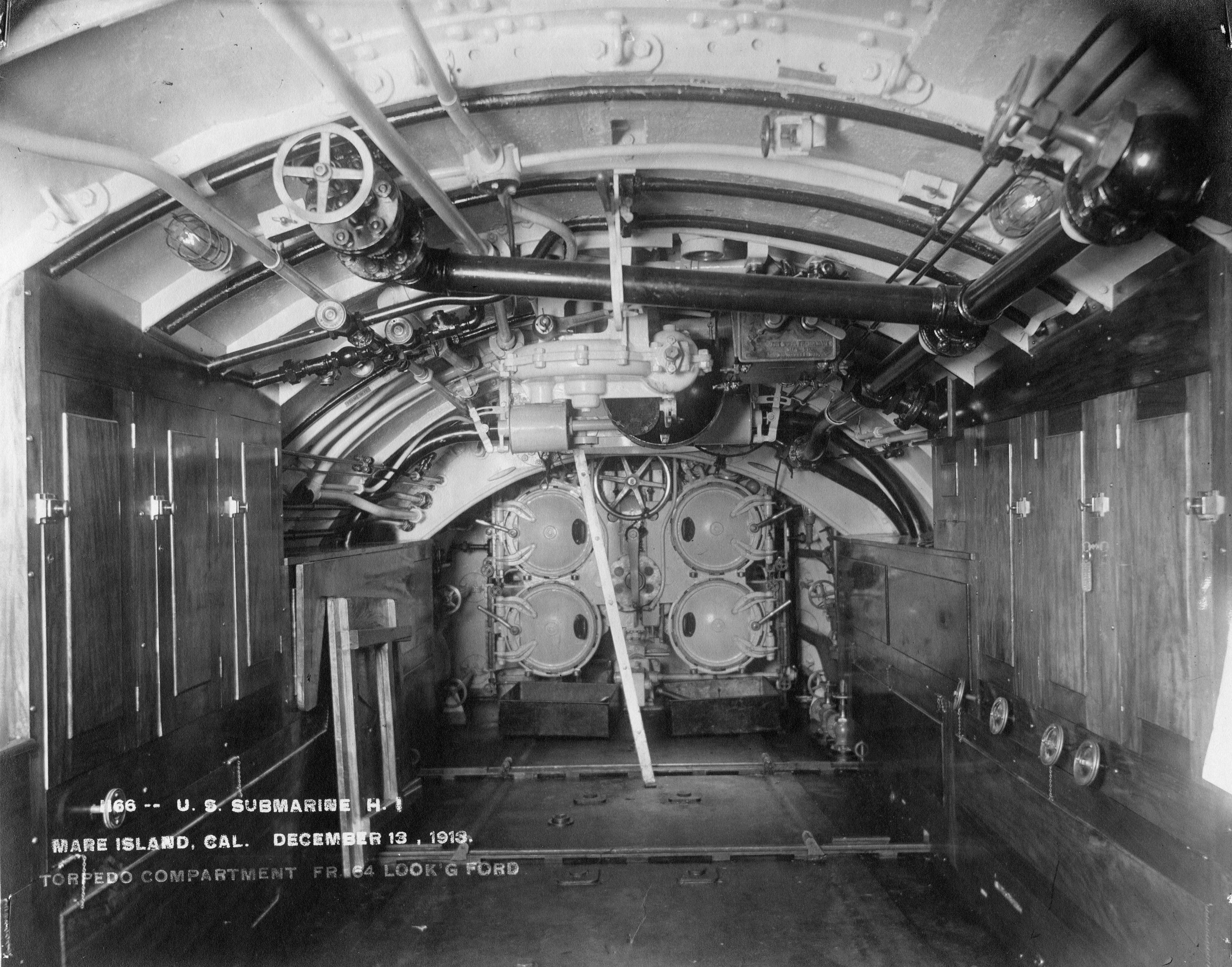 Originally named Seawolf — the first US Navy ship to be named after the formidably betoothed fish — the submarine was built by the Union Iron Works in San Francisco in 1911, the diesel engines by Electric Boat in New London, Connecticut. She was renamed the less exciting H-1 in November of that year and launched in 1913. H-1 was the lead ship of the H-class submarines and patrolled the West Coast until a few months after the United States entered World War I in April 1917. That October, she was deployed to New London and patrolled the Atlantic coast around Long Island Sound until the war’s end. She was ordered back to her home base in San Pedro, California, in January 1920.