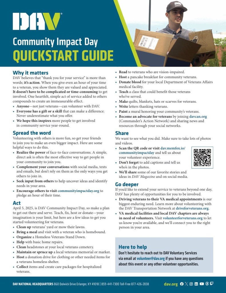- Extending DAV’s mission of hope into the communities where these veterans and their families live through a network of state-level Departments and local Chapters.