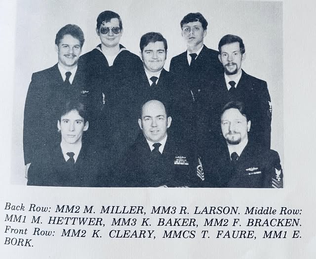 Frank Bracken, MM1(SS) from Gibsonburg, Ohio passed away on May 18, 2025. His on-line obituary on USSVI says that he qualified in submarines on the USS San Francisco (SSN 711) in 1981 and was an MM1 (SS) when he left the navy.