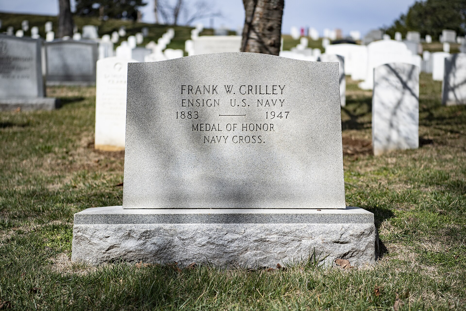 Gravesite of Medal of Honor recipient U.S. Navy Ensign Frank Grilley in Section 8 of Arlington National Cemetery, Arlington, Va., Feb. 13, 2022. (U.S. Army photo by Elizabeth Fraser / Arlington National Cemetery / released)