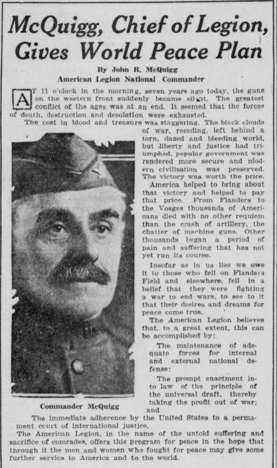 (The American Legion National Commander penned an article in 1925 – this is part of what I presented today)
