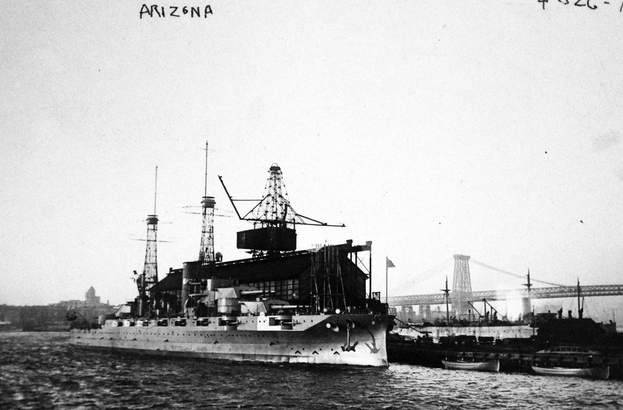 One of the mighty ships to emerge from the battleship building days before the war was the USS Arizona.