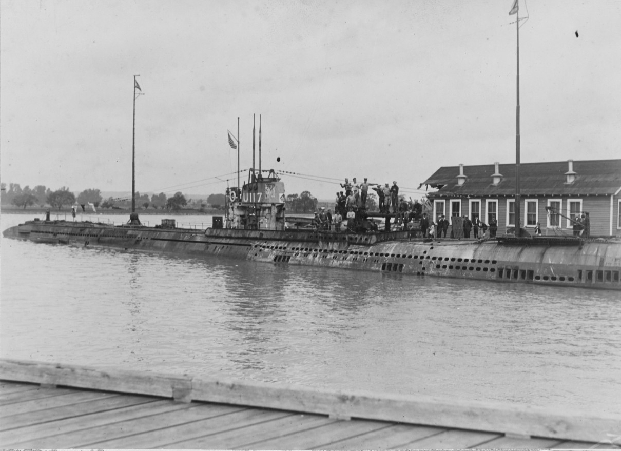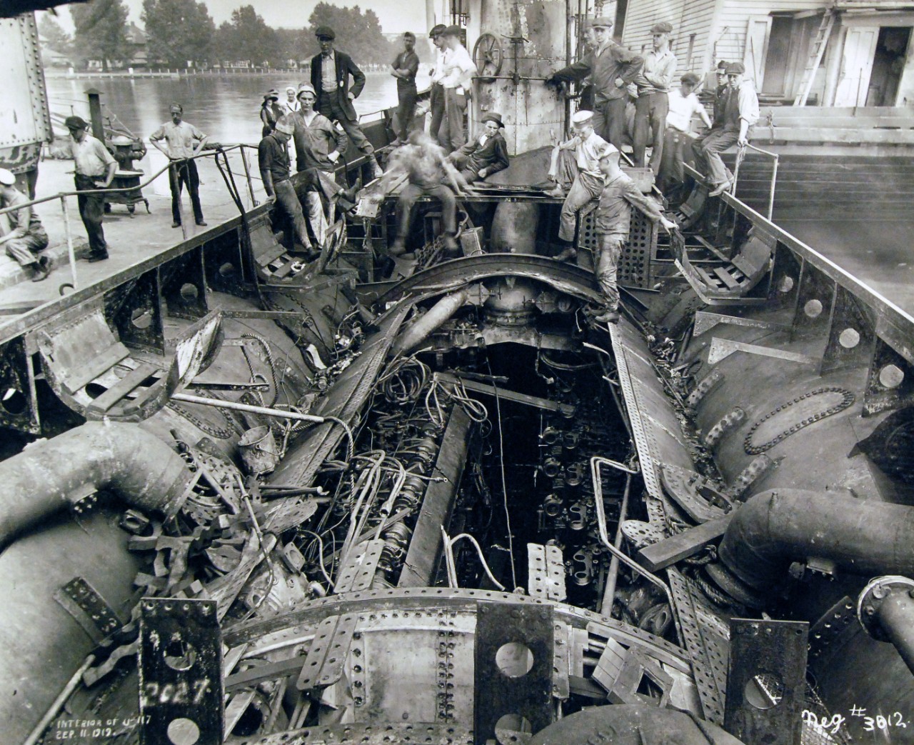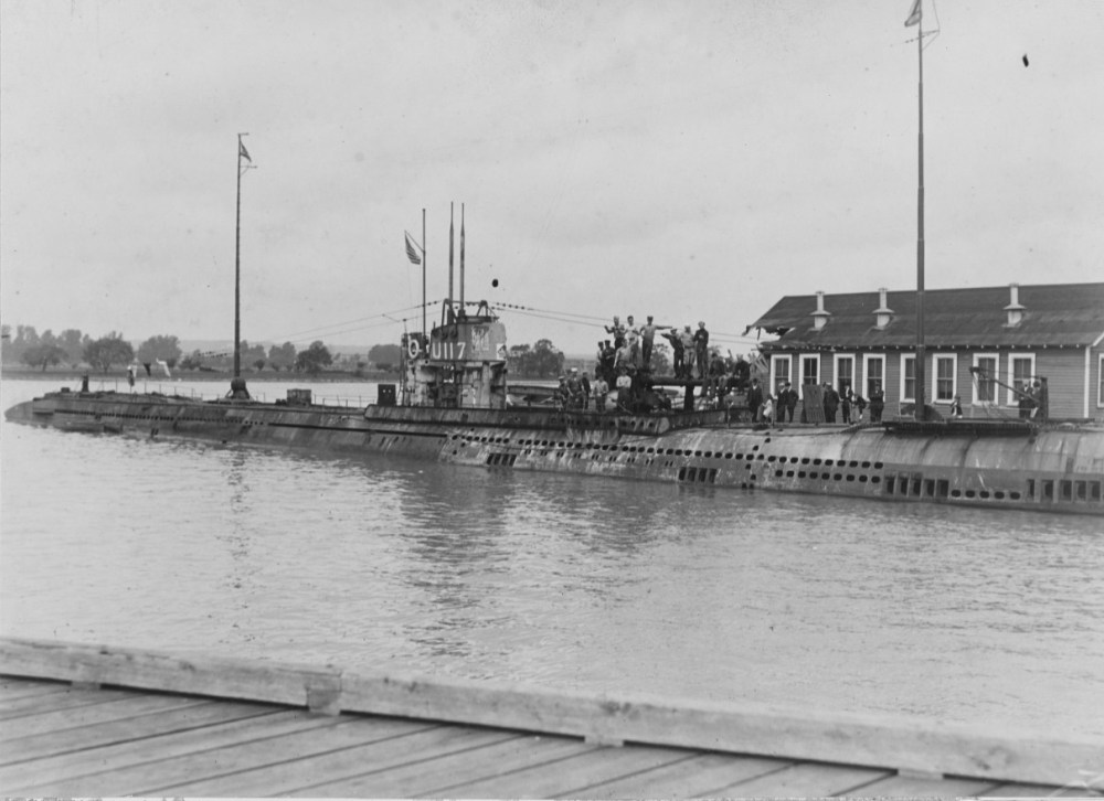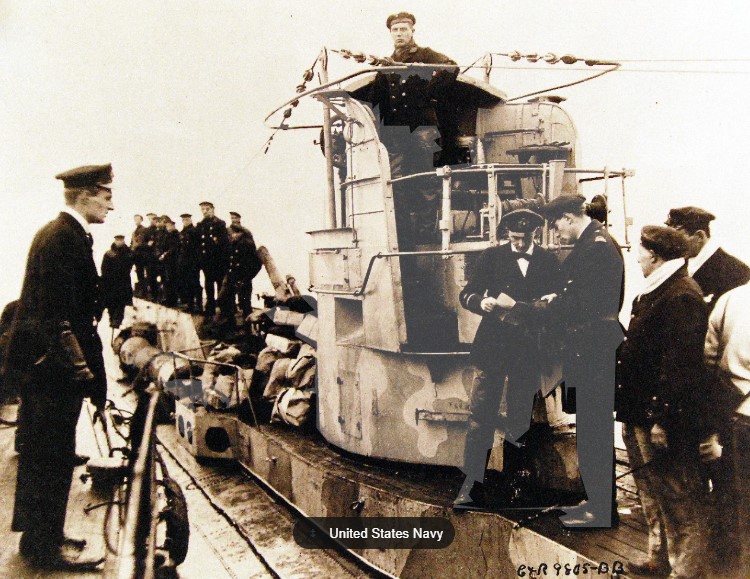At the completion of the war, one of the many disarmament conditions was that the German High Fleet would have to be scuttled or delivered over to the victorious allies as war prizes. This included the remaining submarines that had not been lost or destroyed in the later stages of the war. In the terms of the treaty, the submarines were turned over to the British with a small number being made available for the Americans. The only stipulation for the American designated boats was that they could be used for fund raising but, they had to be destroyed and not used by the Americans as operational boats.