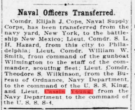 In January of 1925, he was headed to the west coast to command the S-4 which operated out of Mare Island with the Pacific squadrons.