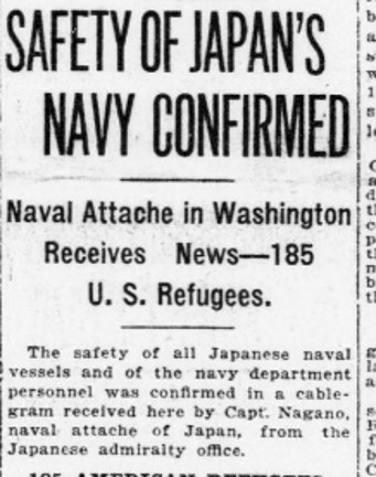 Captain Nagano, Naval attaché from the Japanese admiralty office informed the press that he had received a cablegram from Japan that all Japanese naval vessels and personnel of the navy department were safe. The main fleet had been at sea or in other areas during the quake and its aftermath and had escaped harm according to the reports. Captain Nagano would leave the United States and return home to Japan in December where he would be promoted to Rear Admiral. He would return a number of times to the United Stated over the next few decades and have a very strong opinion about the wisdom of engaging the US in wars. Despite his reluctance, Nagano would play a key role in the life of Cassin Young when less than two decades later he would order the Imperial fleet to carry out the most significant order ever given. One of the Japanese ships sent to help with the recovery work was the battleship Hiei. Along with her would be the battleship Kirishima.