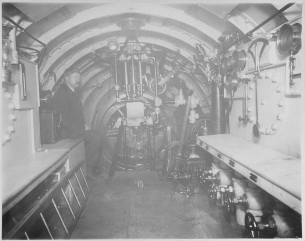 Lake’s Argonaut was fitted with a 30 – horsepower gasoline motor for motive power and with two steel tubes in which compressed air could be stored, lasting in use for 24 hours. Wherever possible, however, the craft operated on air supplied through a hollow mast while another mast expelled exhaust gases from the engine. For emergencies, Argonaut also could rely on a buoy, which would rise to the surface and allow air to flow down its hose.
