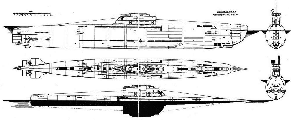 By that time, Allied planes were clouding German skies, and both industrial and naval centers were rocking under the impact of the block- busters. The Type XXI subs which had already been launched were experiencing many design difficulties which hampered their operations.
