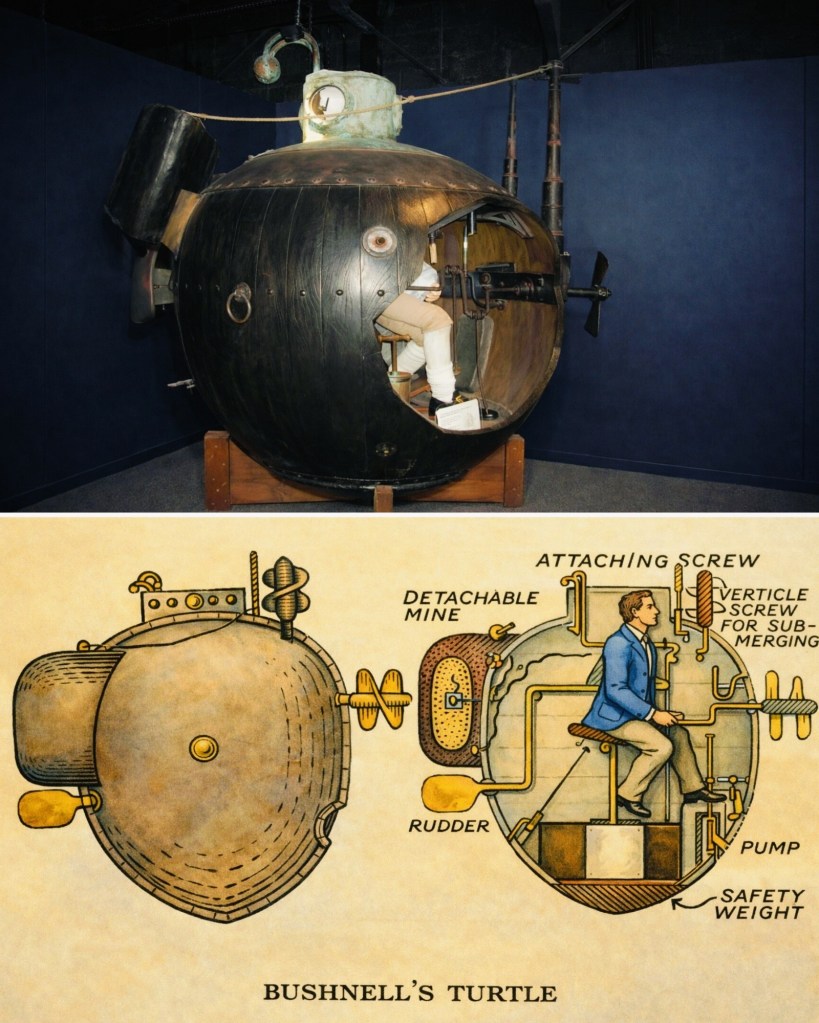 Turtle was a major step forward in design technique and employed the same basic principles which are used today in the design of modern Nuclear Submarines.